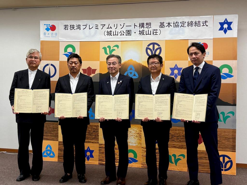 福井県、高浜町、ディライト(株)、(株)ラウムアソシエイツ一級建築士事務所および(株)シロコーポレーションの5者で若狭湾プレミアムリゾート構想の基本協定を締結しました