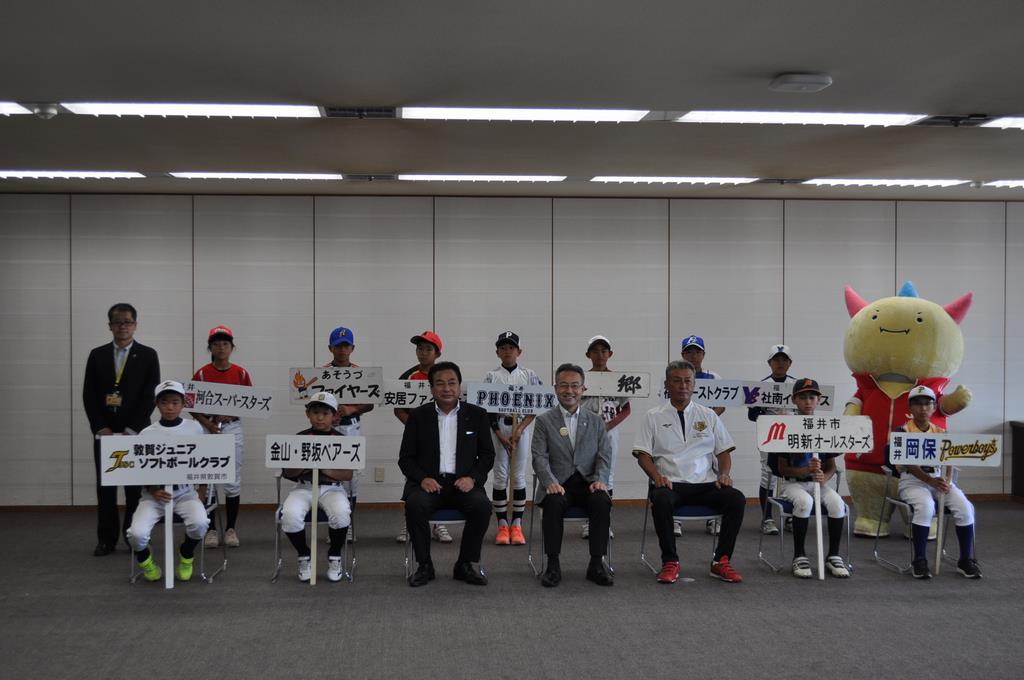第15回びわこオープン全国ジュニアソフトボール大会in敦賀の開催に伴い、出場チームキャプテンの表敬訪問を受けました