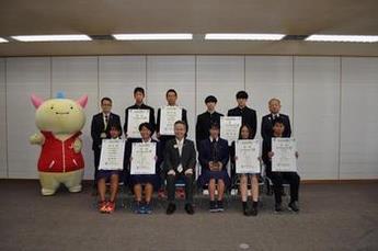 栃木県で開かれた『第77回国民体育大会~いちご一会とちぎ国体~』で優勝した競技の選手らが県庁を訪れ、知事に喜びを報告しました!