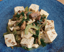 014 くずし豆腐と豚こまのバターしょうゆ炒め