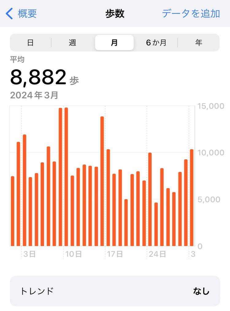- 記録された歩数を1か月単位で画面表示できること(※)