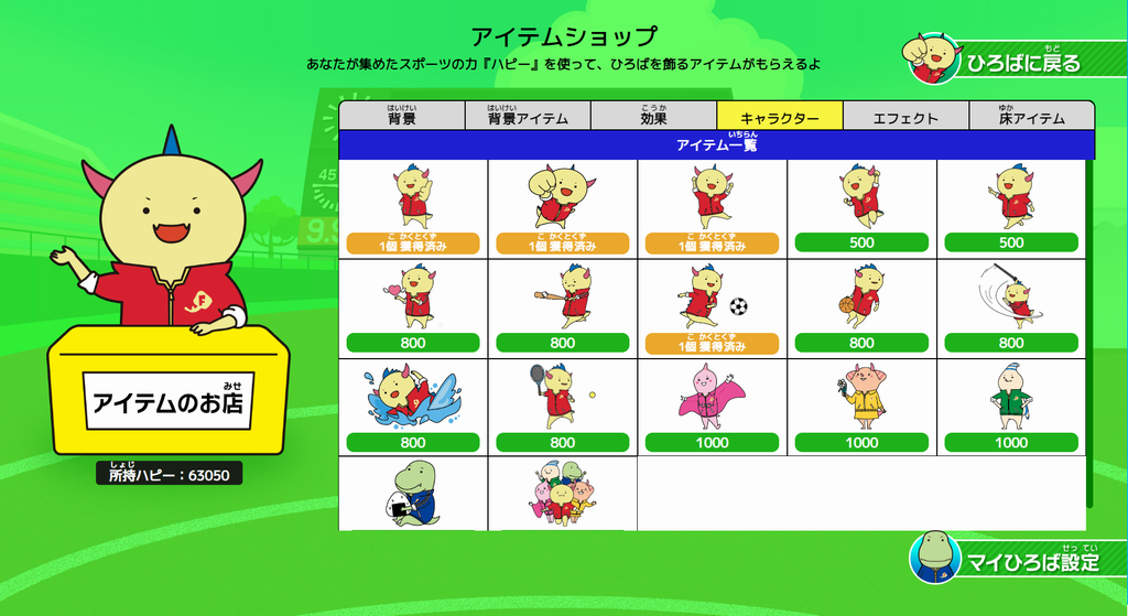 ・貯めたポイント(ハピー)でアイテムが購入できる