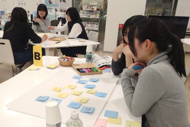 5つの大学・短大から参加する学生メンバー9名が初めて集まった初回ミーティング。県文化課からWGの趣旨や活動内容についての説明を聞いた後、早速3つのグループに分かれて「文化の担い手育成」に向けた事業提案のアイデア出しを行いました。