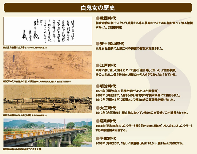 白鬼女橋の歴史を伝えるポケットパークを、橋東側の県道北側に整備します。