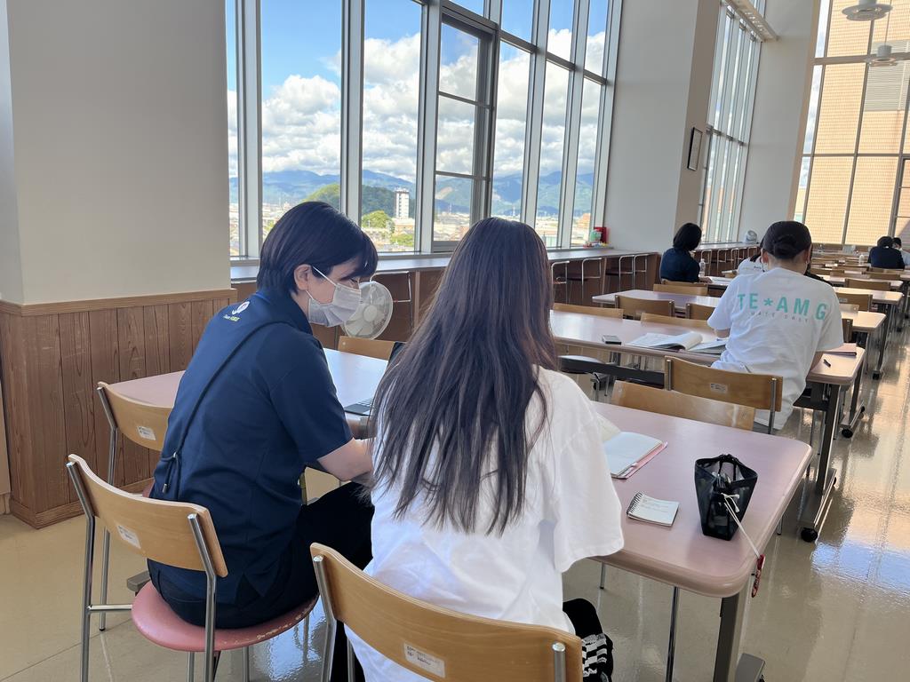 必要に応じて教員が質問に答え、学生の学びが深まるよう支援しながら学習を進めています。