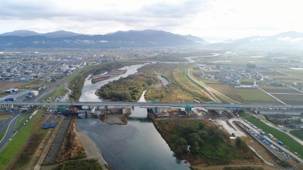 2018年10月に左岸側(南側)で新九頭竜橋上部工に着手し、また、2019年10月に右岸側(北側)で上部工に着手、2021年5月に上部工が閉合しました。
