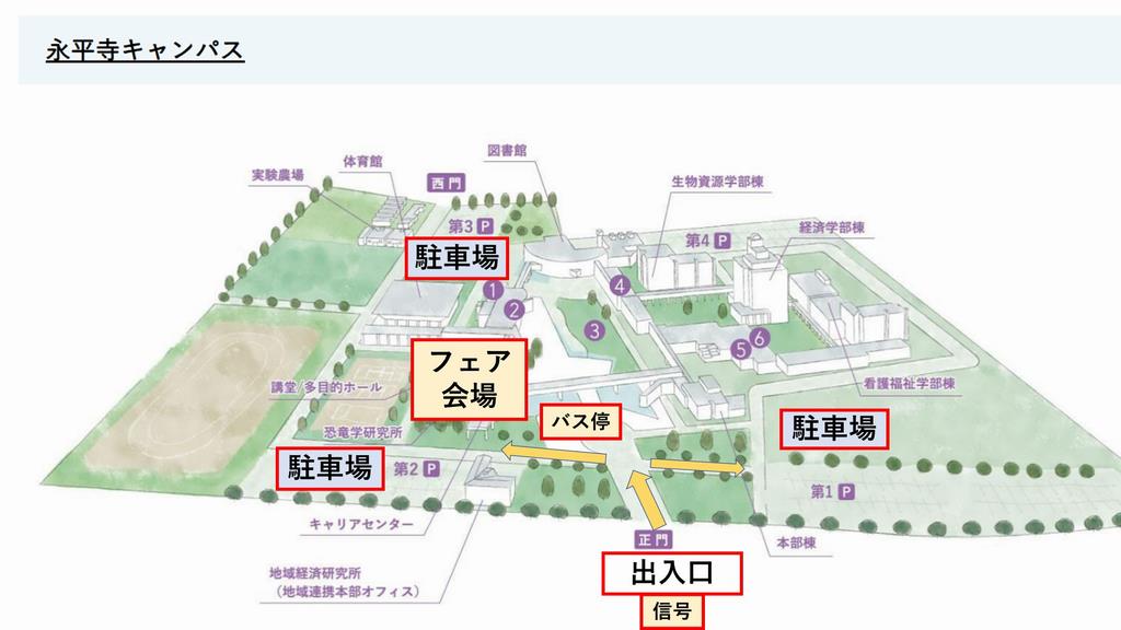 会場 福井県立大学 永平寺キャンパス 講堂 (〒910-1195 福井県永平寺町松岡兼定島4-1-1)