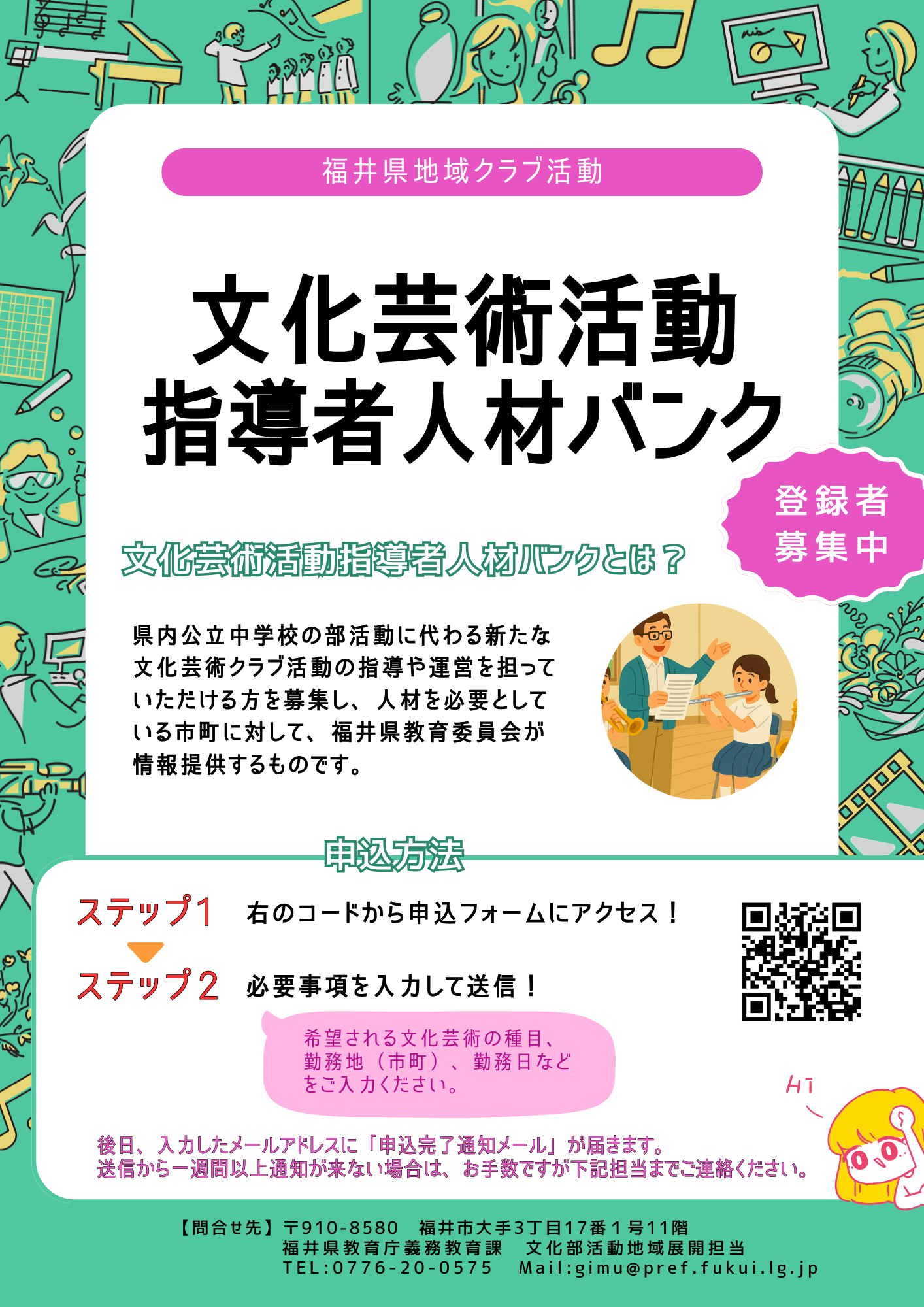 福井県地域クラブ活動 文化芸術活動指導者人材バンク