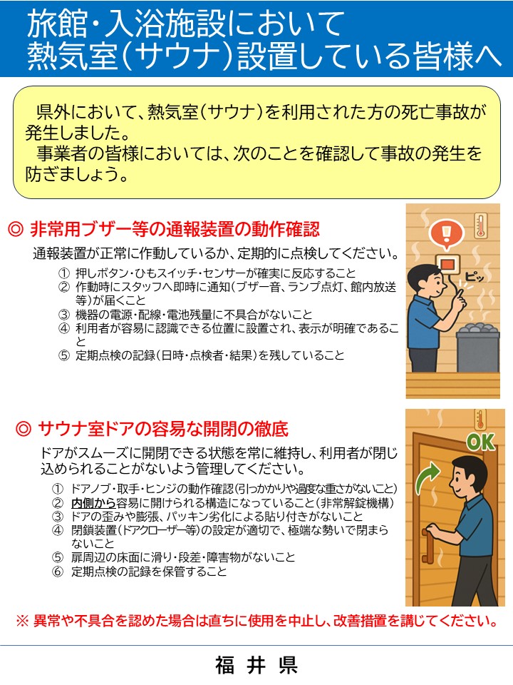 旅館・入浴施設において熱気室(サウナ)を設置している皆様へ(注意喚起)