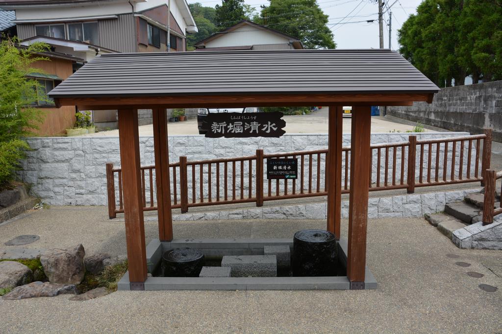 亀山の南側を流れる新堀川は、今から440年程前の天正年間前半に金森長近公が大野城を亀山に建設した際に、外堀として掘られたものと言われています。今では、町のせせらぎ・小川として残っており、希少水生生物のイトヨも生息しています。その新堀川沿いに新堀清水は湧いています。