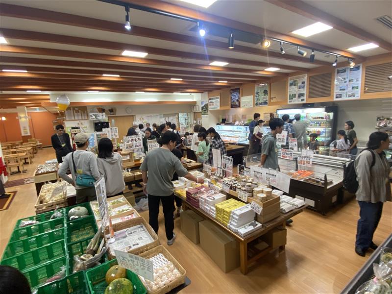 まちの駅こってコテいけだには、たくさんの池田町特産品があり、多くの人がそこでしか購入できない商品を買い求めていました。