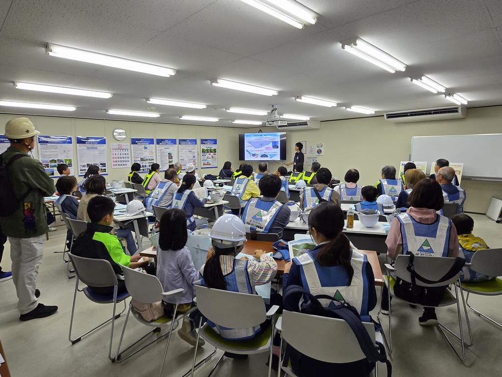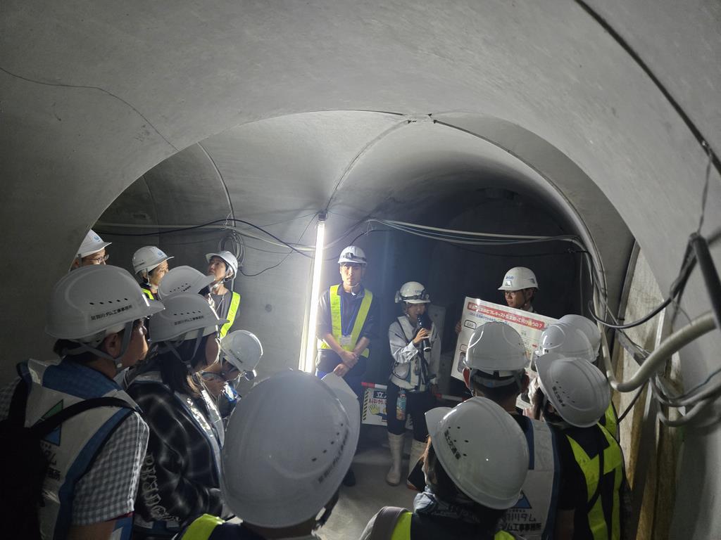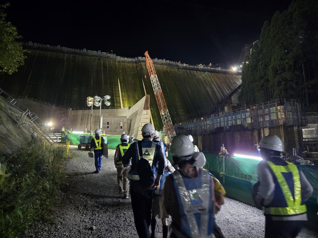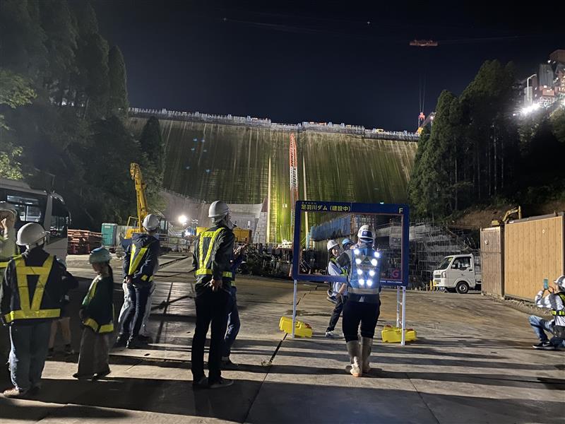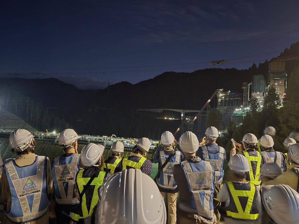 令和7年度は、10月13日(月・祝)に開催し、80名にご参加いただきました。今回は初めて夜間工事中の現場見学を実施しました。参加者は、特別な許可を受けて現場に入り、ライトアップされた幻想的で迫力あるダム本体の工事の様子や、ダム内部にある監査廊を見学しました。