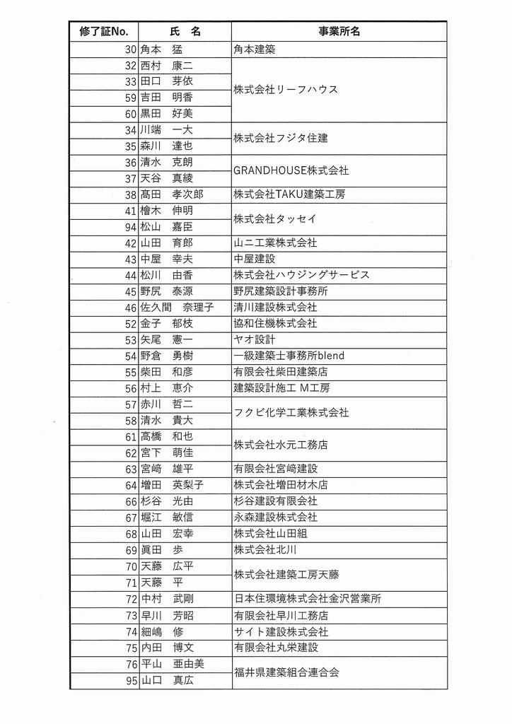 【HP公開用】受講修了者一覧(省エネ住宅に関する講習会)(PDF形式 459キロバイト)