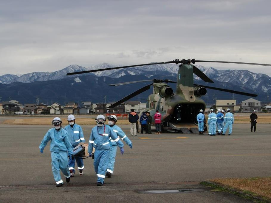 1/6 石川県能登町の病院から患者15名を福井空港に搬送し、県内病院で受け入れ