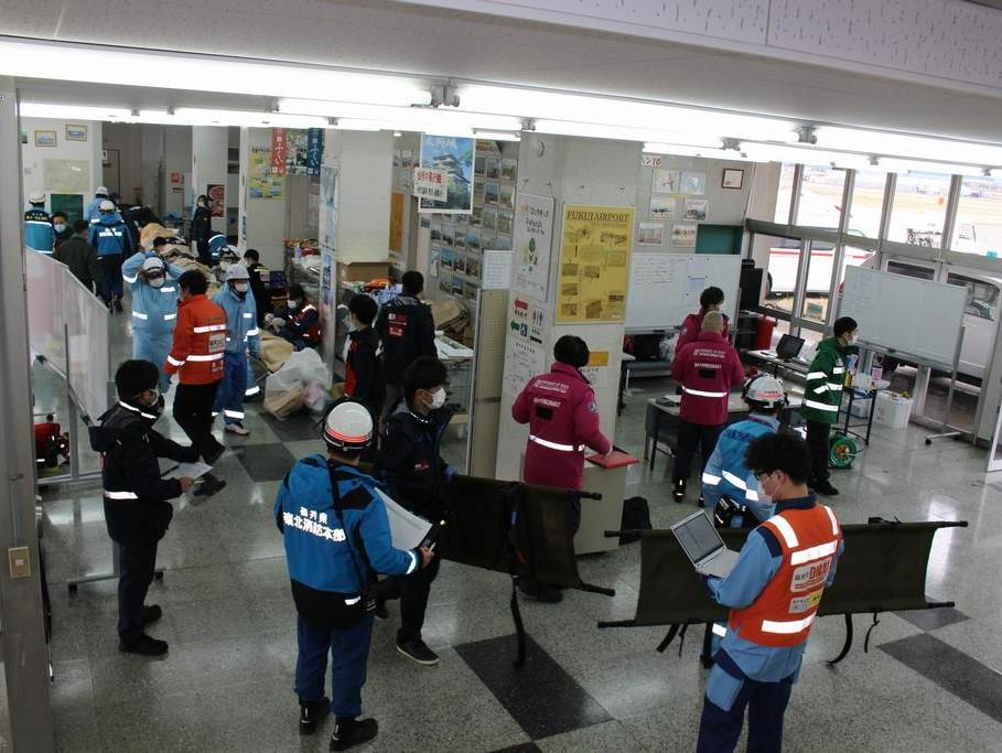石川県で活動する緊急消防援助隊の航空小隊を福井空港で受け入れし、運行の助言や燃料の給油、待機所提供など後方支援をしています。