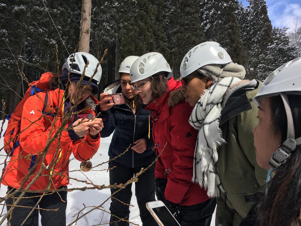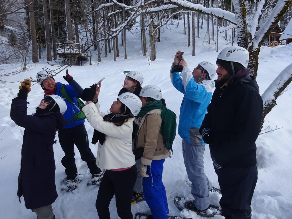 「ツリーピクニックアドベンチャーいけだ」で2班に分かれ、長さ510メートル、全長約1キロメールのワイヤーケーブルで森の上を体験する「メガジップライン」および森の中で雪の上を歩きながら自然を楽しむ「スノーピクニック」を体験しました。
