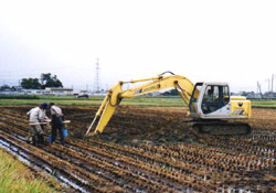 ある遺跡の中やその近くで工事が行われる時、遺跡が実際に残っているか確かめるために、前もって工事する範囲の一部を試しに掘ってみます。