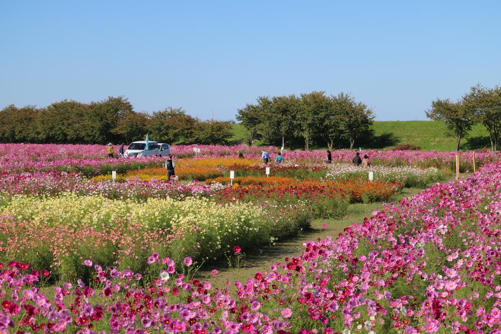 10月12日(日)には、コスモスまつりが開かれ、名物である「花トラ車」からコスモスを満喫することができます。