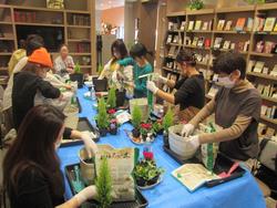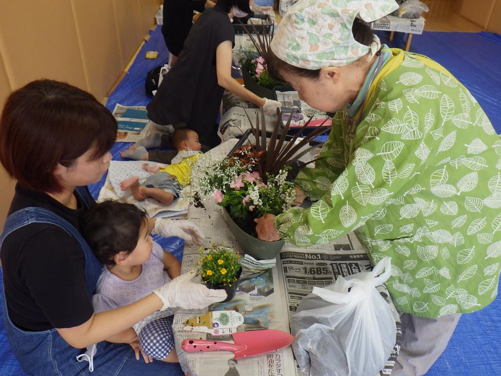 家庭や地域で新たに花づくりに取り組む若い人材の育成を目的に、子育て支援施設等において20代・30代を対象とした花の寄せ植え研修を行っています。