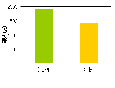 | 図1 うき粉と米粉が揚げかまぼこに与える硬さの違い (添加量10%) |