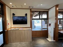 道の駅若狭おばまは、小浜ICに近接し、観光バスやイベント時のシャトルバス等の発着場等に利用され、特に休日には多くの観光客が訪れます。今回の情報館改修により、情報提供装置の設置、休憩用のイス、テーブルの設置、小浜市が整備した物産館との接続による動線確保のほか、外構の整備により、快適性、利便性の向上を図ります。