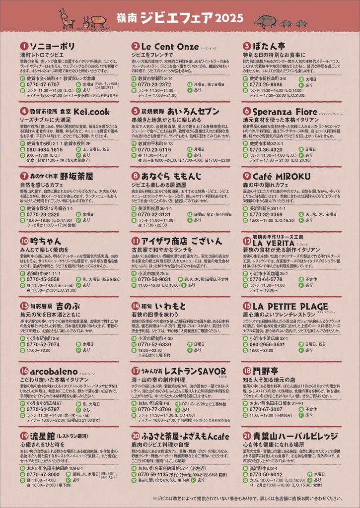 嶺南ジビエフェア2026が開催されます(2/1~2/28)