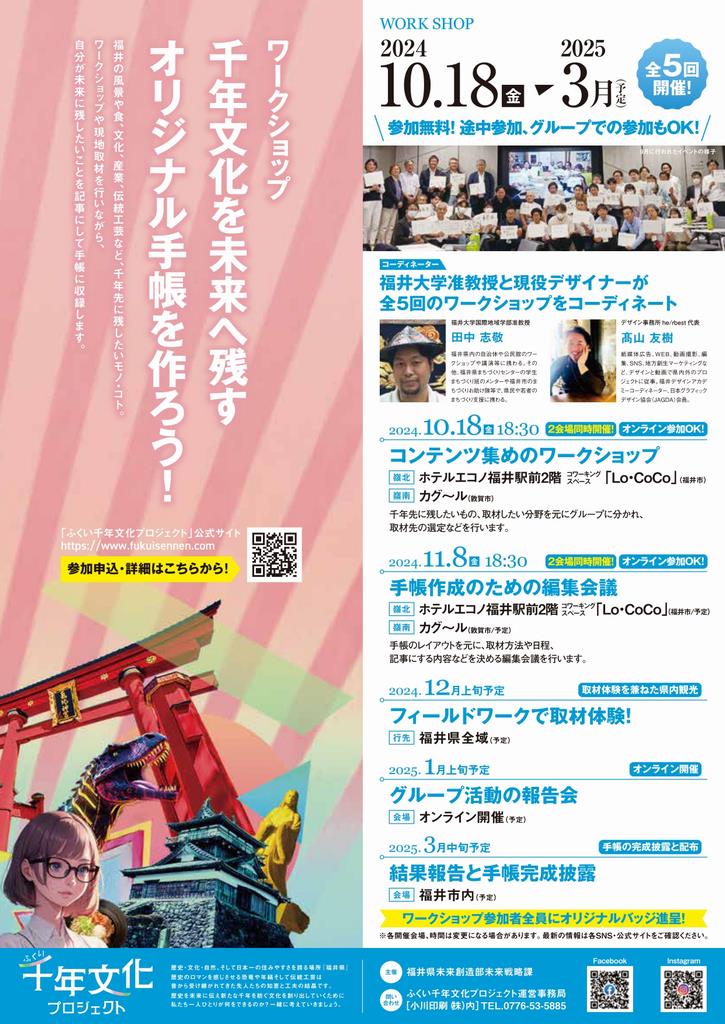 専門的な知識を有する人材と県民が改めて福井が持つ良さを風土、自然、歴史などの観点から探求し、1000年後の未来を考える県民参加型プロジェクト。