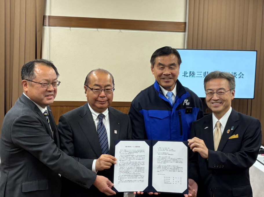 北陸三県(富山県、石川県、福井県)と北陸経済連合会は、これまでも北陸新幹線をはじめとする社会基盤の整備、観光・イメージアップ、企業誘致、カーボンニュートラルなど様々な分野で連携を進め、着実に成果を積み重ねてきました。