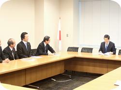 平成26年10月8日(水)、敦賀開業の3年前倒しを図るための今後の取組みなどについて、県選出国会議員と県、県議会、沿線市、経済界による意見交換を行い、その後中央要請を実施しました。