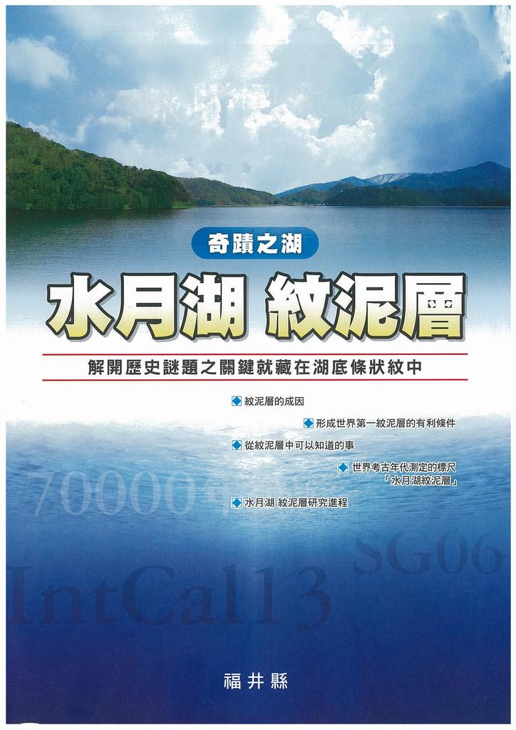 水月湖では1993年、2006年、2012年に年縞(ねんこう) が採取され研究が進められています。水月湖の年縞の長さは45mにもおよび、1年で平均0.7mmという薄さで7万年という非常に長い年月をかけ途切れなく堆積してできたものです。7万年分もの連続した年縞とその研究成果は国内外から注目されています。