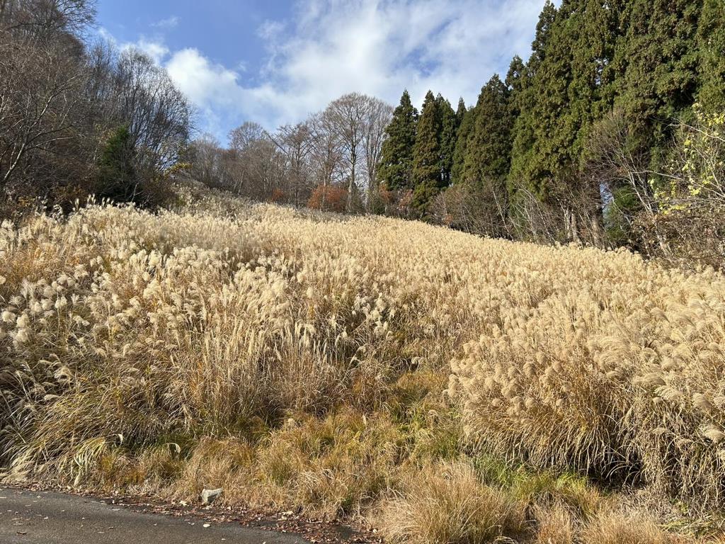 *今庄の茅の様子(積雪前)と、後日県内の茅場候補巡りを行いました。