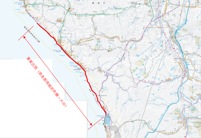事業区間 南条郡南越前町糠~大谷 (位置図は下記地図を参照ください)