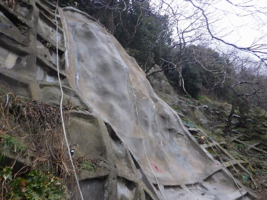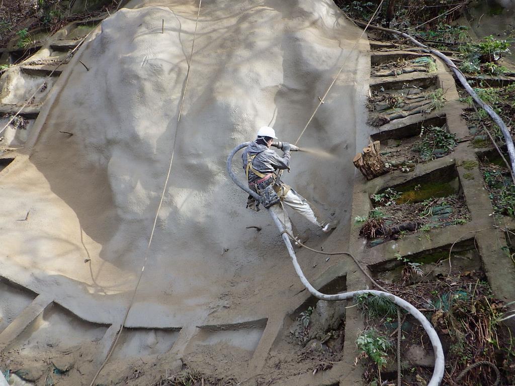当事業は、住民の生命・財産を守るため、老朽化したモルタル吹付工を補修する急傾斜事業です。
