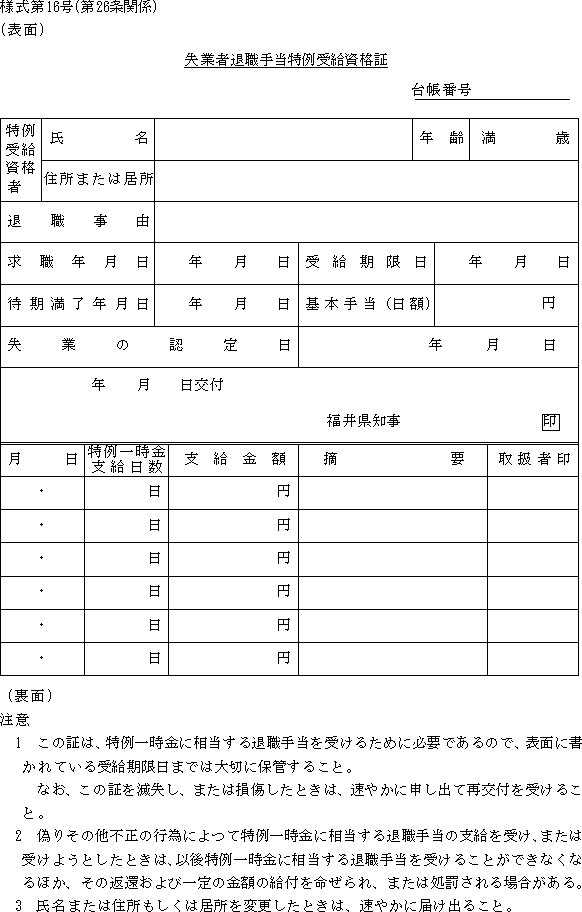 福井県職員等の退職手当に関する条例施行規則を公布する。