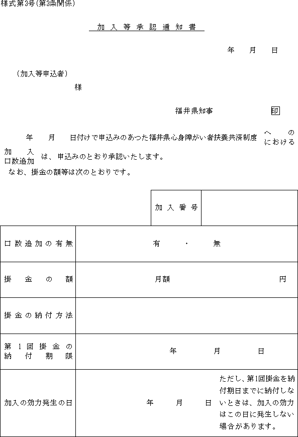 様式第三号)を交付し、加入等を承認しないときは、加入等不承認通知書(