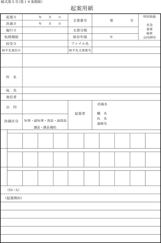(9) 起案文書 上司の決裁を受けるための事案の決定案を記載し、または記録した文書等をいう。