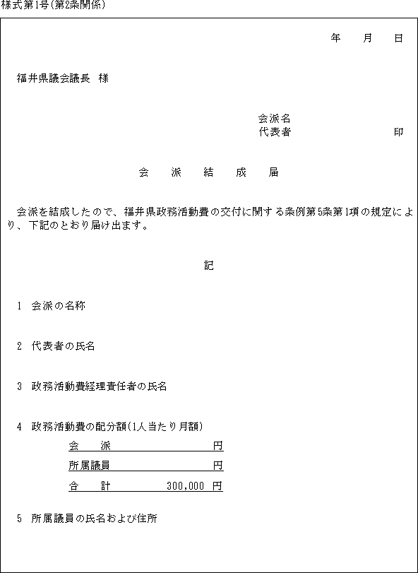 第2条 条例第5条第1項の規定による届出は、会派結成届(様式第1号)によりするものとする。