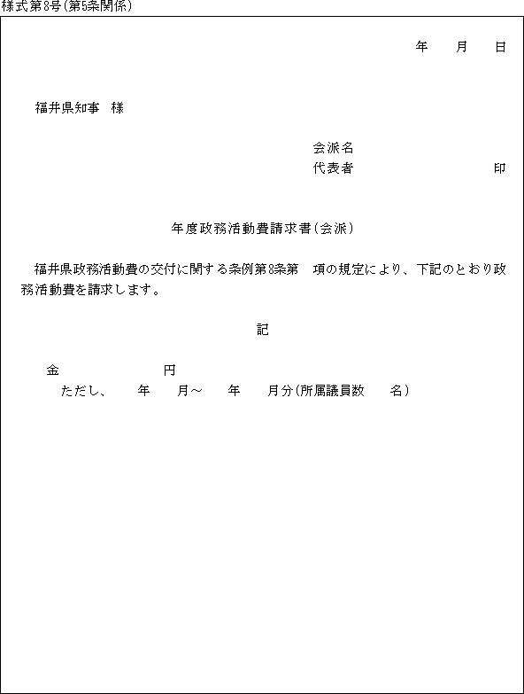 (1) 会派 様式第8号(第5条関係)政務活動費請求書(会派)