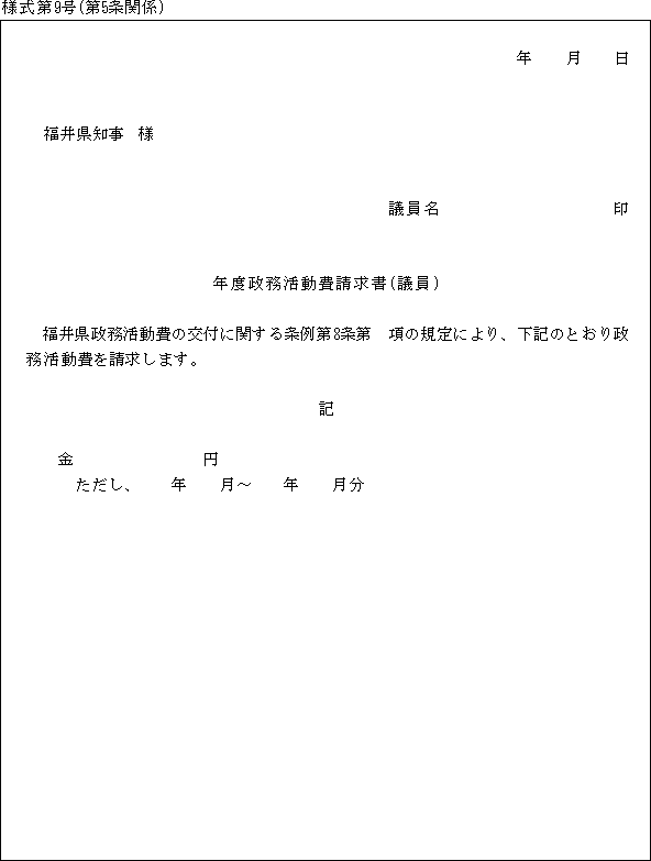 (2) 議員 様式第9号(第5条関係)政務活動費請求書(議員)