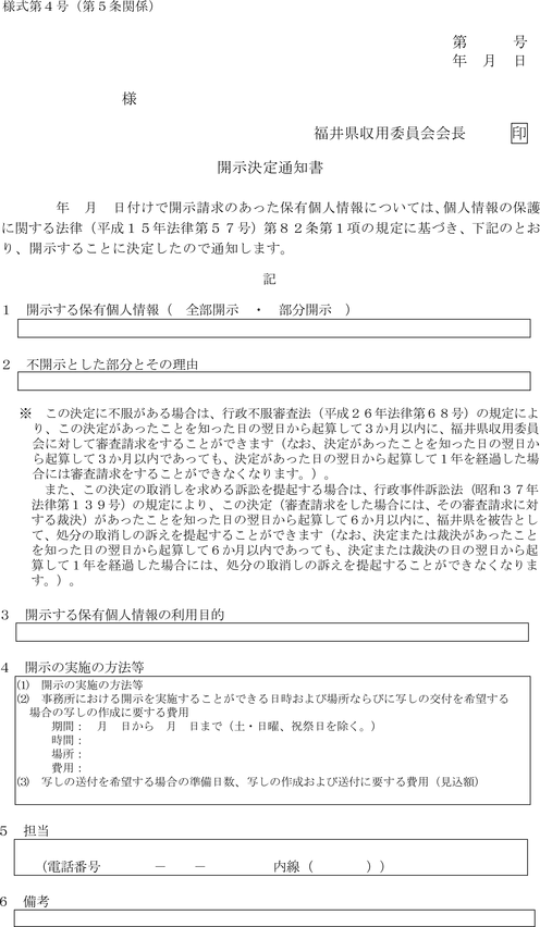 第5条 法第82条第1項の書面は、開示決定通知書(