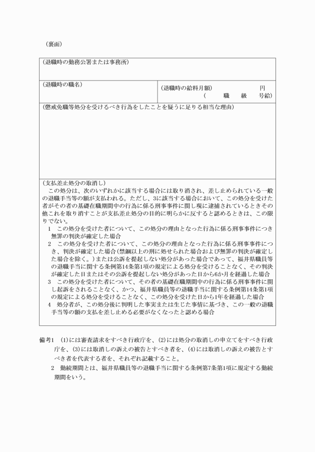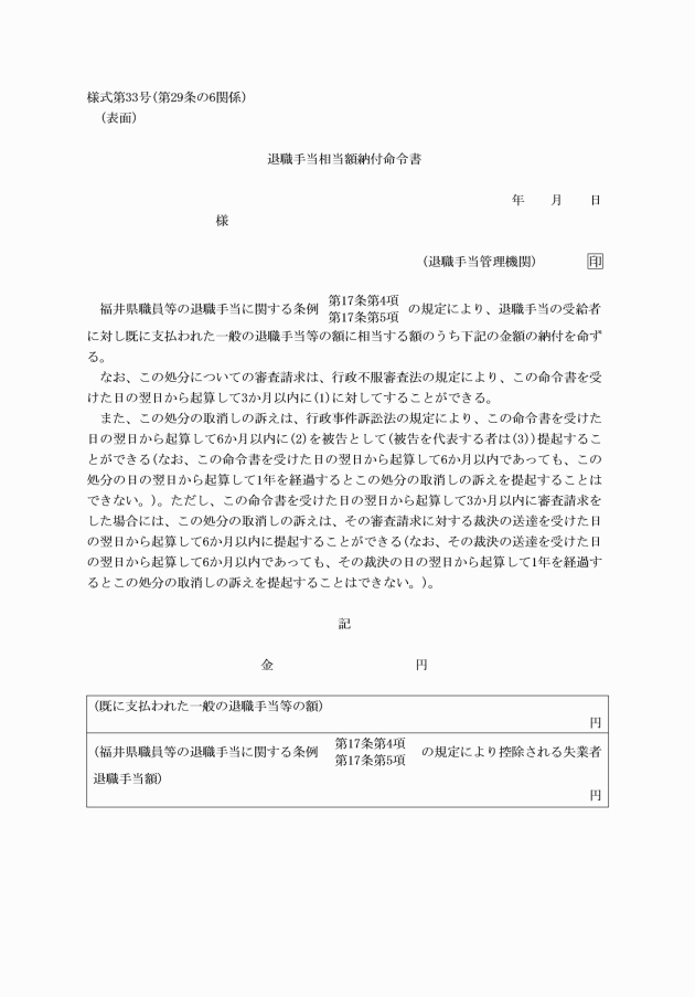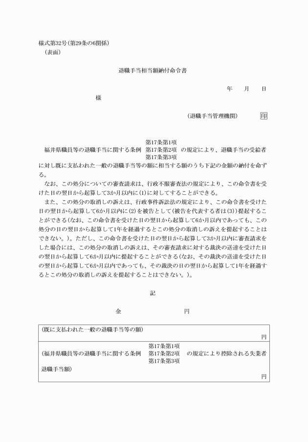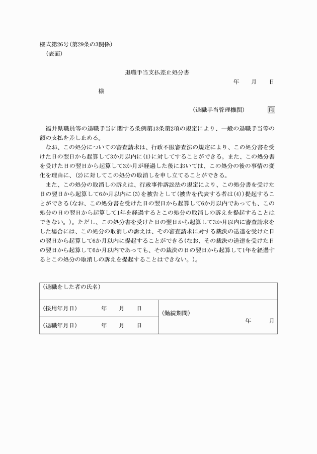 福井県職員等の退職手当に関する条例施行規則
