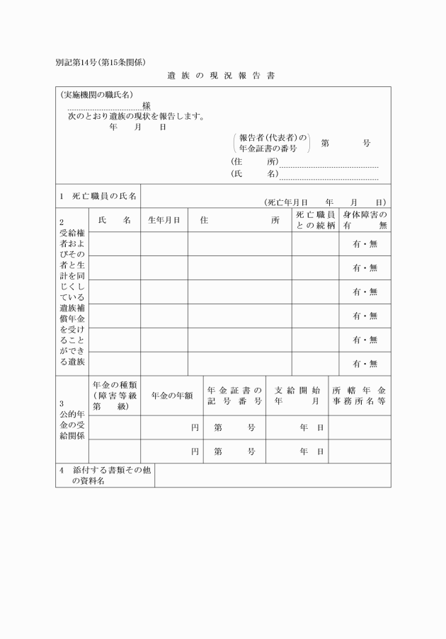 第14条 年金証書の交付を受けた者またはその遺族は、当該証書に係る年金たる補償を受ける権利が消滅した場合には、遅滞なく、当該年金証書を実施機関に返納しなければならない。