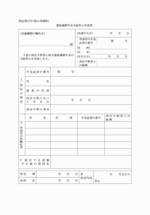 2 実施機関は、前項の規定による申請に基づき遺族補償年金の支給を停止し、または支給の停止を解除したときは、当該申請を行なった者にすみやかに書面でその旨を通知しなければならない。
