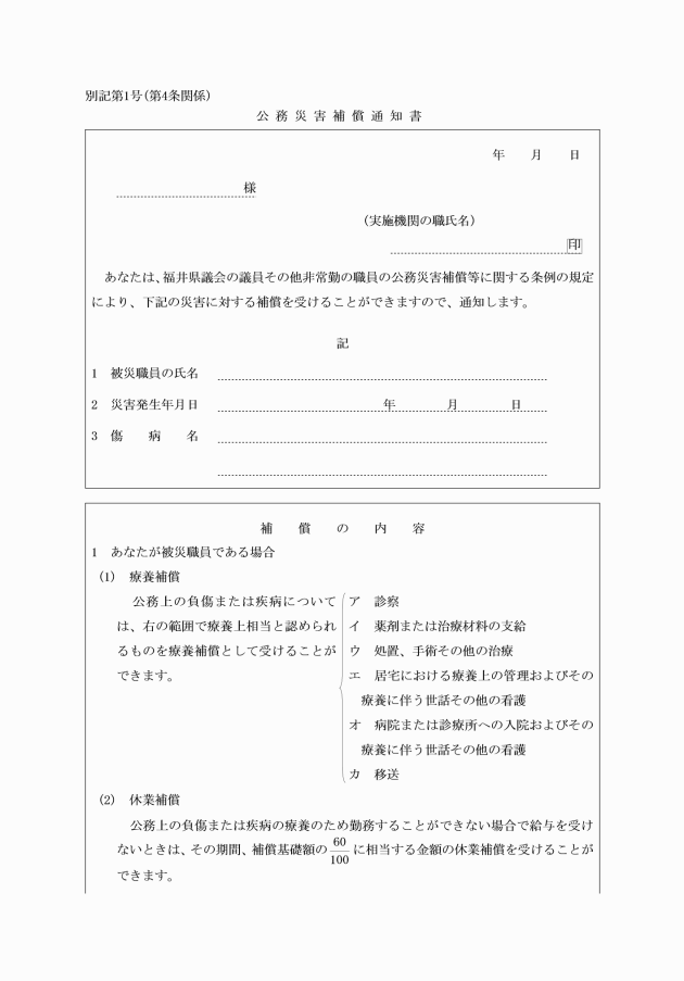 福井県議会の議員その他非常勤の職員の公務災害補償等に関する条例施行規則