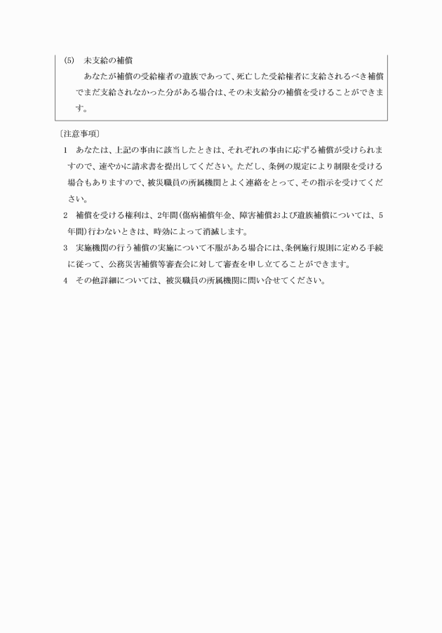 第2条の4 公務上の災害の範囲は、公務に起因する負傷、障害および死亡ならびに地方公務員災害補償法施行規則(昭和42年自治省令第27号)別表第1に掲げる疾病とする。