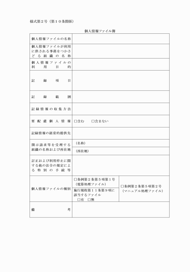 (2) 条例第2条第5項第1号に係る個人情報ファイルについて、第9項に規定する個人情報ファイルがあるときは、その旨