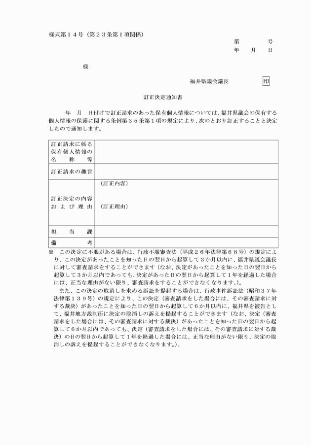 福井県議会の保有する個人情報の保護に関する条例施行規程