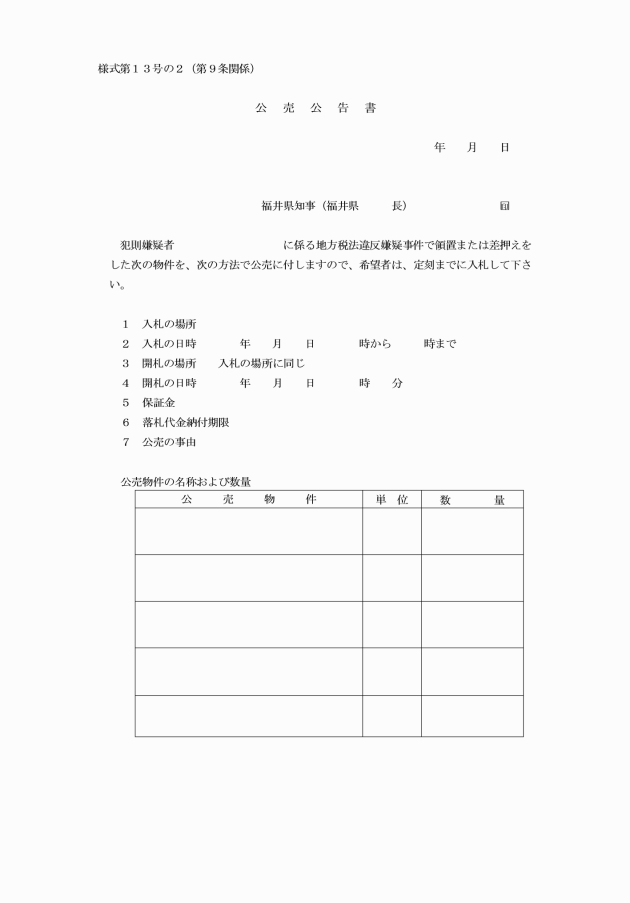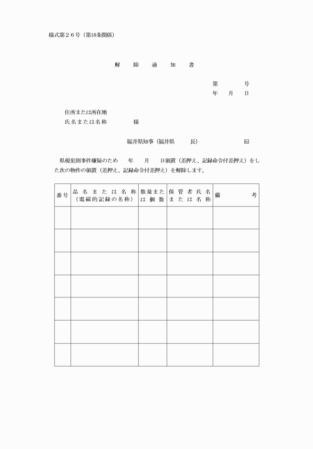福井県県税犯則事件取締執行規則