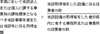 (1) 事業税 当該特別償却設備を事業の用に供した日の属する年以後3年または当該日の属する事業年度以後3年以内に終了する事業年度について、当該各年または各事業年度の所得または収入金額のうち、次に掲げる区分ごとにそれぞれ当該区分に定める算式により計算した額の合算額に対するもの 県税条例第44条第1項から第5項までおよび第49条の5に規定する税率に10分の1を乗じて得た税率
