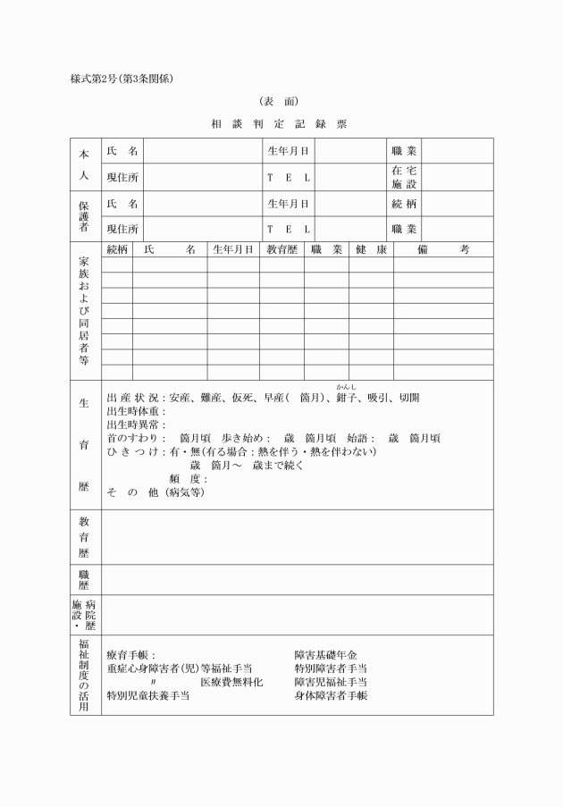 第3条 相談所長は、別記様式第2号の相談判定記録票を備え、必要な事項を記載しなければならない。